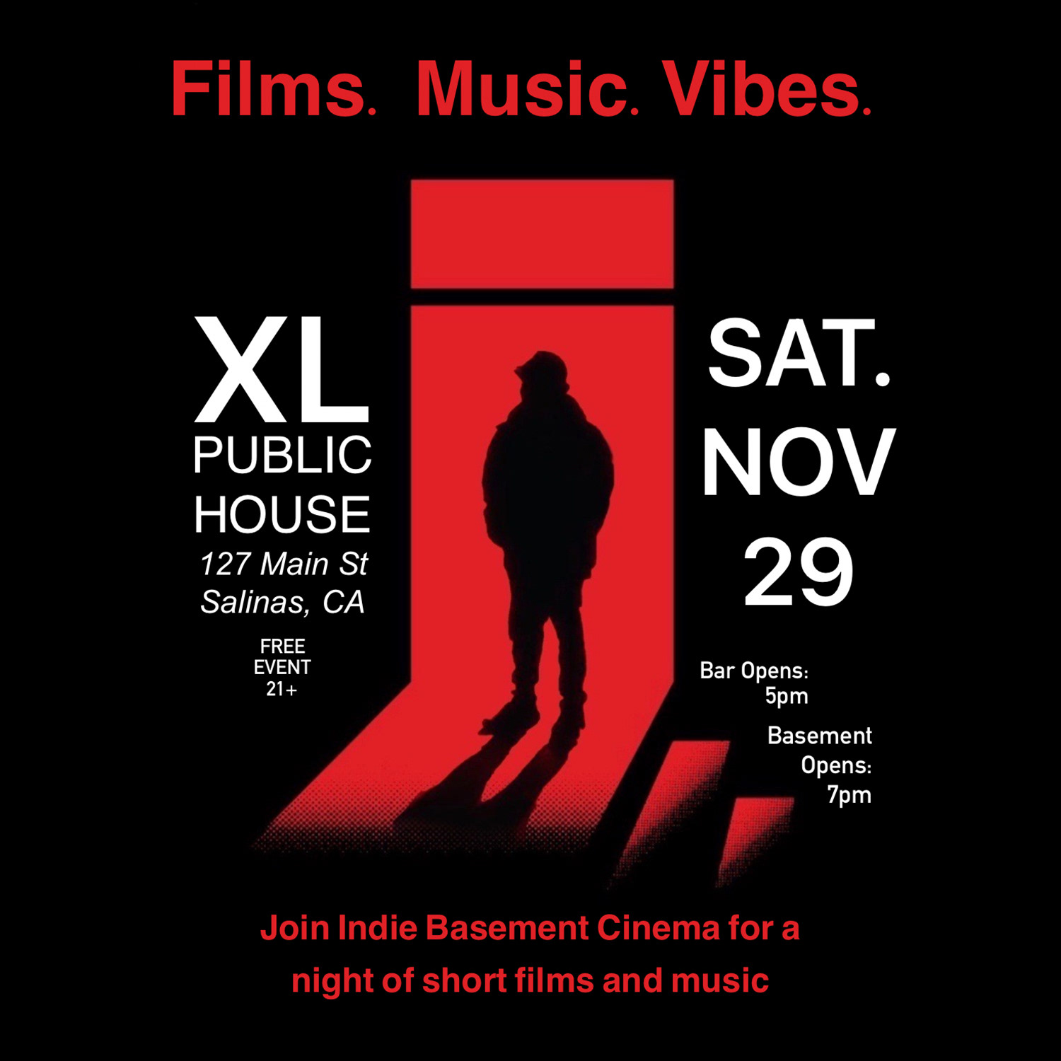 Screening at the Xl Public House Bar in Salinas, CA on Saturday, November 29th.
